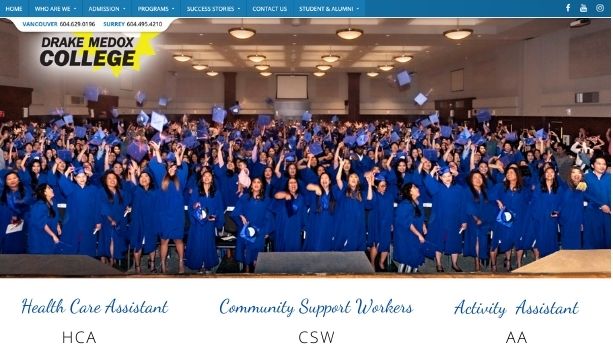 With 40 years of experience in BC Health care system, Drake Medox College offers diploma certificates and training programs to become health care assistants, community support workers and activity assistants. It is located in Surrey and Vancouver.